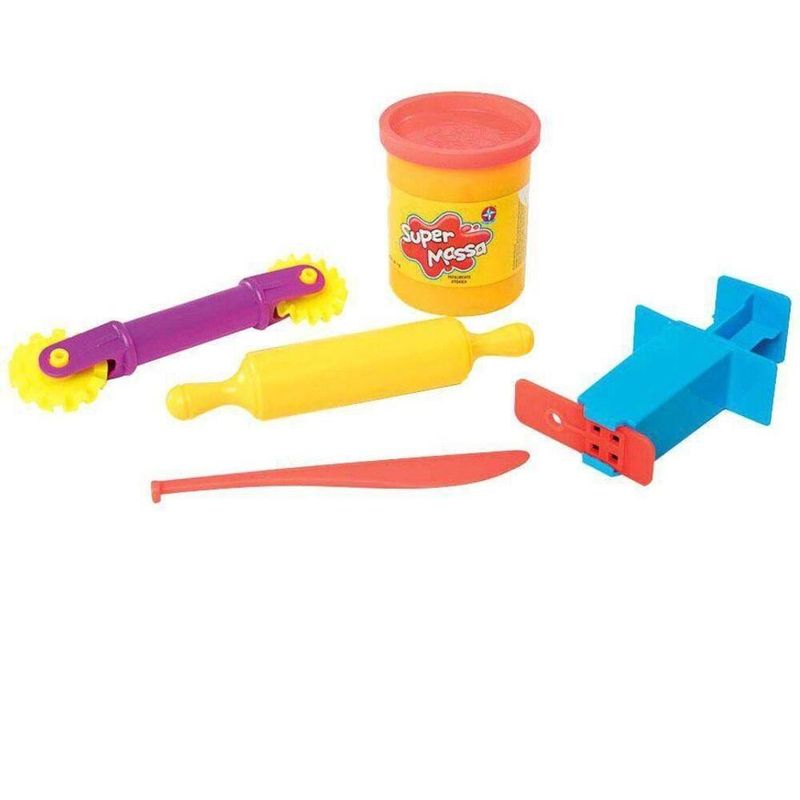 Ficha Técnica:Marca: Estrela;Nome do produto: Super Massa Mochilinha;Idade recomendada: A partir de 3 anos;Selo Inmetro: 001793/2020;Contém: 5 moldes de animais (pato, cavalo, cachorro, elefante e borboleta), 1 extrusora, 1 régua extrusora, 1 pistão, 1 cortador giratório com duas extremidades cortantes, 1 faca, 1 rolinho e 1 pote de 110g de massa.