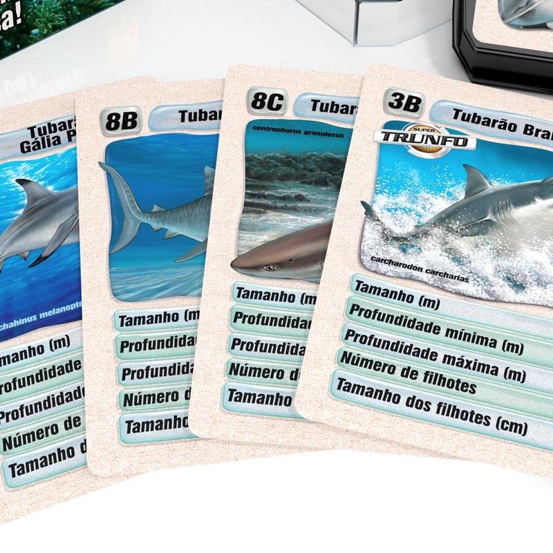 Dicas de uso:Estimule a curiosidade e o aprendizado sobre a vida marinha enquanto se diverte disputando partidas empolgantes.Incentive a interação social e o raciocínio estratégico entre os jogadores, tornando o Super Trunfo Tubarões uma opção de entretenimento saudável para toda a família.