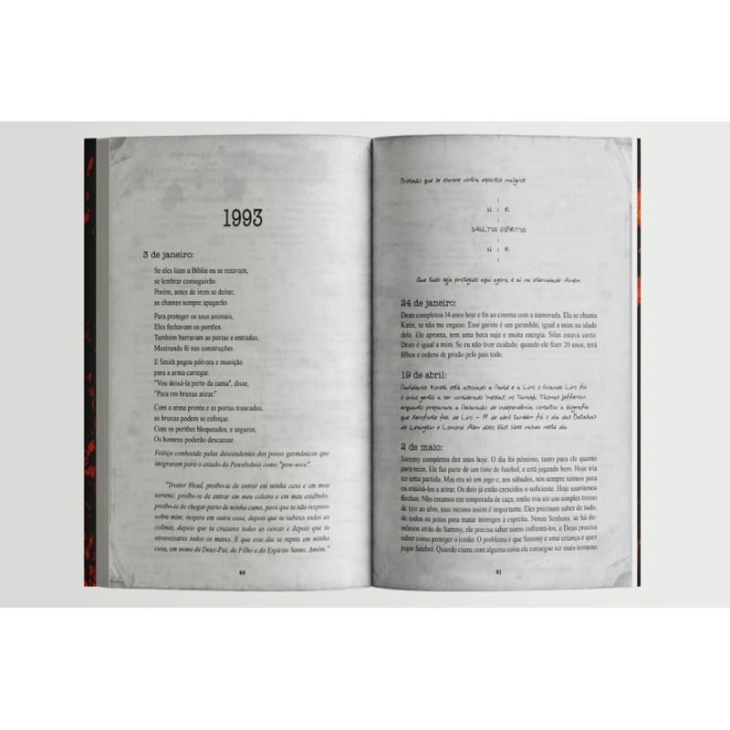 Sam e Dean conhecem todos os segredos que John Winchester guardou em seu diário. Agora você vai saber também.No dia 2 de novembro de 1983, Sam e Dean Winchester perderam a mãe, morta por uma força demoníaca sobrenatural. Após a tragédia, o pai deles, John, decidiu aprender tudo que podia sobre as criaturas malignas que vivem nos cantos sombrios e nas estradas mais longínquas dos Estados Unidos... John Winchester reuniu em seu diário lendas, folclores e superstições sobre inúmeros inimigos do outro mundo, mas também relatou suas próprias experiências e angústias — na caçada à criatura que matou sua esposa, enquanto criava, sozinho, seus dois filhos.O diário de John Winchester traz para os fãs de Supernatural tudo aquilo que sempre sonharam: os rituais de exorcismo que Sam e Dean aprenderam a usar; a história de Samuel Colt; a primeira caçada de Dean; o time de futebol infantil de Sam... E tudo sobre a frenética caçada aos seres sobrenaturais.Este diário reproduz fielmente todas as anotações, conselhos e estratégias que John colecionou e que servem como valiosas armas na saga dos Winchester