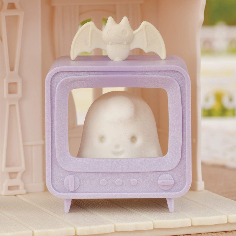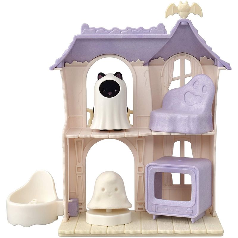 Sylvanian Families - Casa Surpresa Assombrada A Spooky Surprise House é uma casa mal-assombrada com um bebê Gato da Meia-Noite em uma fantasia de fantasma, Spookie e móveis. A casa mal-assombrada vem com um elevador fantasma e TV. Este conjunto inclui uma casa, duas figuras e móveis e pode ser jogado sozinho. Combine com o parque de diversões para bebês, conjunto de carruagem real, carrossel de estrelas de bebês e séries de fantasias de bebês e outras figuras para jogos ainda mais divertidos em parques de diversões (todos vendidos separadamente). Conteúdo: Casa surpresa assustador, bebê gato da meia-noite, assustador, pedestal, sofá, TV, fantasia de fantasma, antena de morcego (um total de 8 peças) * The Spooky Surprise House inclui uma casa, uma figura e móveis, e pode ser jogada sozinha. * The Spooky Surprise House vem com um elevador fantasma, TV e sofá. * Inclui um bebê Gato da Meia-Noite vestido de fantasma e um Spookie. * Estimula o desempenho imaginativo das crianças. * Adequado para maiores de três anos.