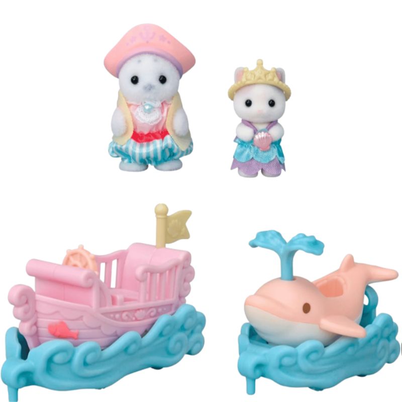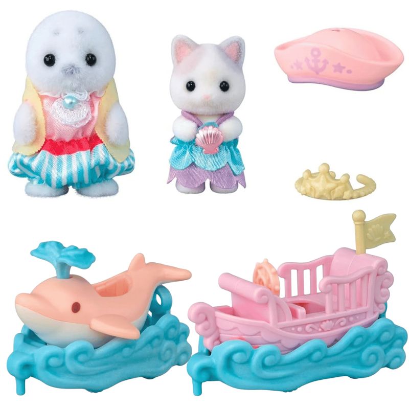 Um conjunto de brinquedos de parque de diversões com características fofas, incluindo o bebê foca e o bebê gato Latte. O barco balança para frente e para trás enquanto se move. A "água" da cabeça do golfinho sobe e desce. Os bebês usam roupinhas fofas que combinam com cada brinquedo. O barco e o golfinho podem ser conectados.