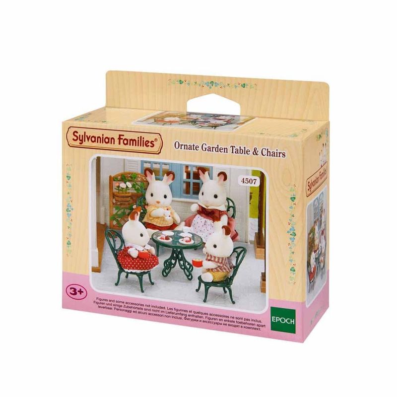 Sylvanian Families Conjunto de Mesas e Cadeiras Ornamentais - Epoch..Este adorável conjunto inclui uma mesa e quatro cadeiras, e é perfeito para o jardim da Casa da Cidade com Luzes...A Epoch Magia é uma filial da japonesa Epoch Co., e trouxe para o Brasil a linha Sylvanian Families, febre entre as crianças do Japão, Europa e Estados Unidos. ..É uma linha que foca em temas como natureza, família e amor, e que ensina esses valores de forma lúdica para a criança, estimulando a criatividade e a imaginação. São colecionáveis e conectáveis, de maneira que é sempre possível encaixar novos itens nos já existentes, aumentando a brincadeira.