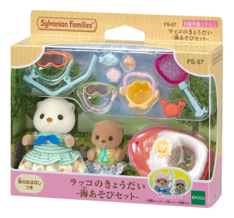 A família Lontra-Marinha é formada por adoráveis ??personagens redondas. Este conjunto inclui a menina Lontra-Marinha e o bebê, além de itens para brincar no mar. Com um barquinho, equipamento de mergulho, rede de pesca e muito mais, as irmãs têm muitas maneiras de se divertir no mar! O bebê pode andar no barquinho e a menina pode usar o equipamento de mergulho. A saia da menina Lontra-Marinha pode ser retirada para transformar seu vestido em um maiô. As irmãs podem usar a rede de pesca para pegar mariscos, um peixe e um caranguejo.