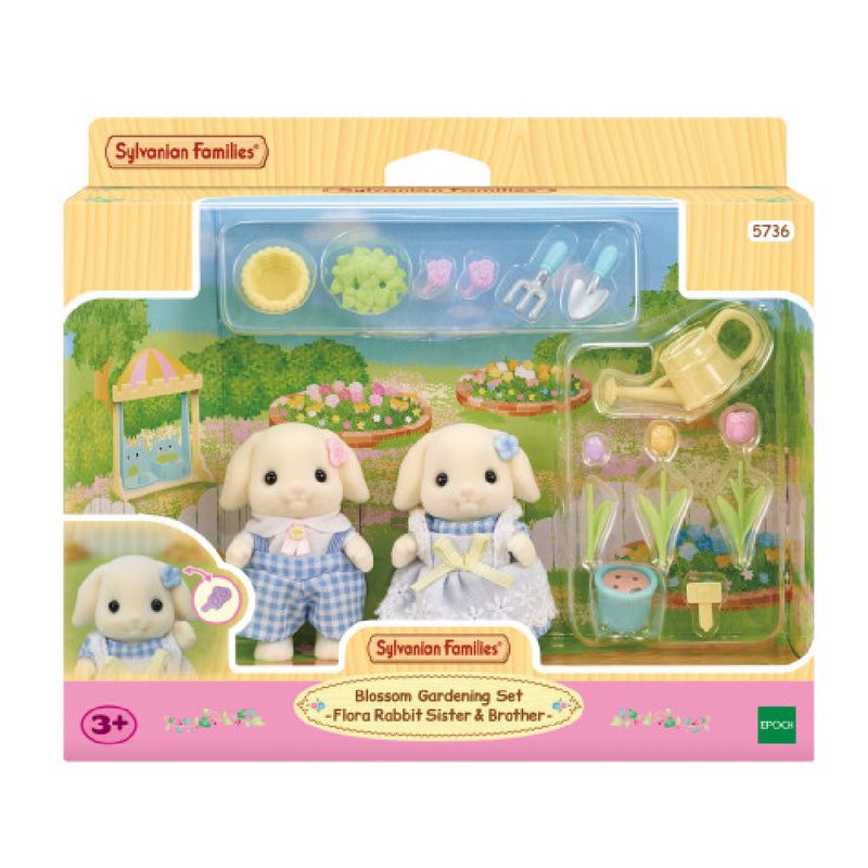 "*O Conjunto de Jardinagem – Irmã e Irmão Coelhos Floral vem com a menina e o menino Coelho Floral e diversos acessórios de jardinagem. Os dois personagens têm orelhas grandes e adoráveis e amam flores.
