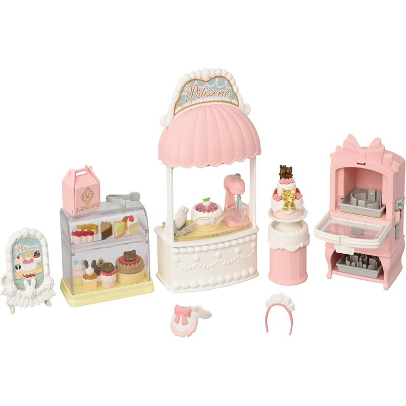 Divirta-se brincando de faz de conta com este conjunto de confeitaria que inclui um forno que assa pães de ló e uma variedade de decorações para bolos. Depois que os pães de ló estiverem assados, decore com creme e coberturas para fazer todos os tipos de bolos. São mais de 100 combinações diferentes de decorações! Disponha os bolos na vitrine e na mesa de exposição. É possível pegar os bolos com a pinça e colocar em uma caixa para os clientes levarem para casa. A faixa de cabeça e o avental podem ser colocados em outros bonecos infantis e adultos (vendidos separadamente).