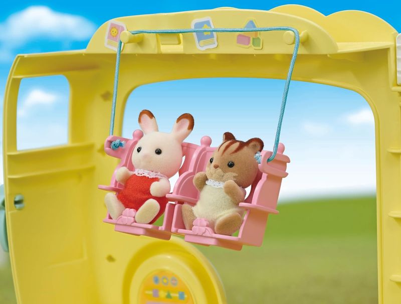 *O Ônibus Arco-Íris Jardim de Infância é um ônibus de jardim de infância de três andares que acomoda 28 bebês (incluindo bebês de berço). *O ônibus se transforma em uma divertida área de brincadeira para os bebês. *Os assentos se transformam em carrossel, balanço, escorregador, gangorra, piano e carrinho de bebê. *Qualquer bebê, inclusive os bebês de berço, pode sentar no carrossel e no carrinho de bebê. *As cordas do balanço podem ser usadas como cintos de segurança no ônibus. *Design encantador com estampas como sol e lua no ônibus e assentos. *Combine com o Castelo Ensolarado Jardim de Infância e a Piscina & Caixa de Areia Jardim de Infância (vendidos separadamente) para fazer um jardim de infância que se parece com um castelo grande. *Combine com Castelo Ensolarado Jardim de Infância, a Piscina & Caixa de Areia Jardim de Infância, o Balanço Jardim de Infância, os conjuntos Amigos do Jardim da Infância e a Família dos Coelhos Floral (vendidos separadamente) para ainda mais diversão. *Combine com bebês, inclusive bebês de berço (vendidos separadamente).