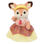 A dona, a mãe Cervo, usa um uniforme com estampa de donuts.