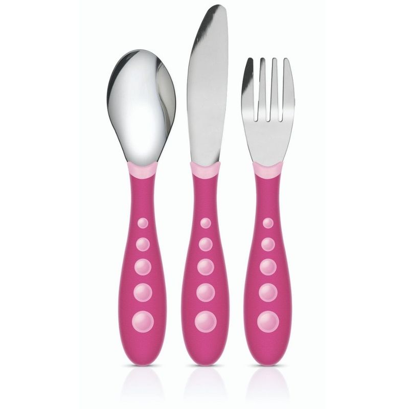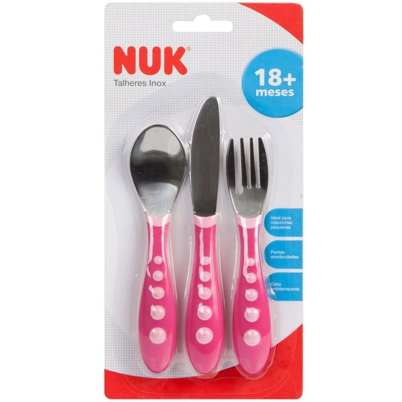TALHERES DE INOX - 03 PEÇAS - ROSA - 18M + NUK