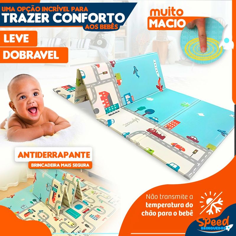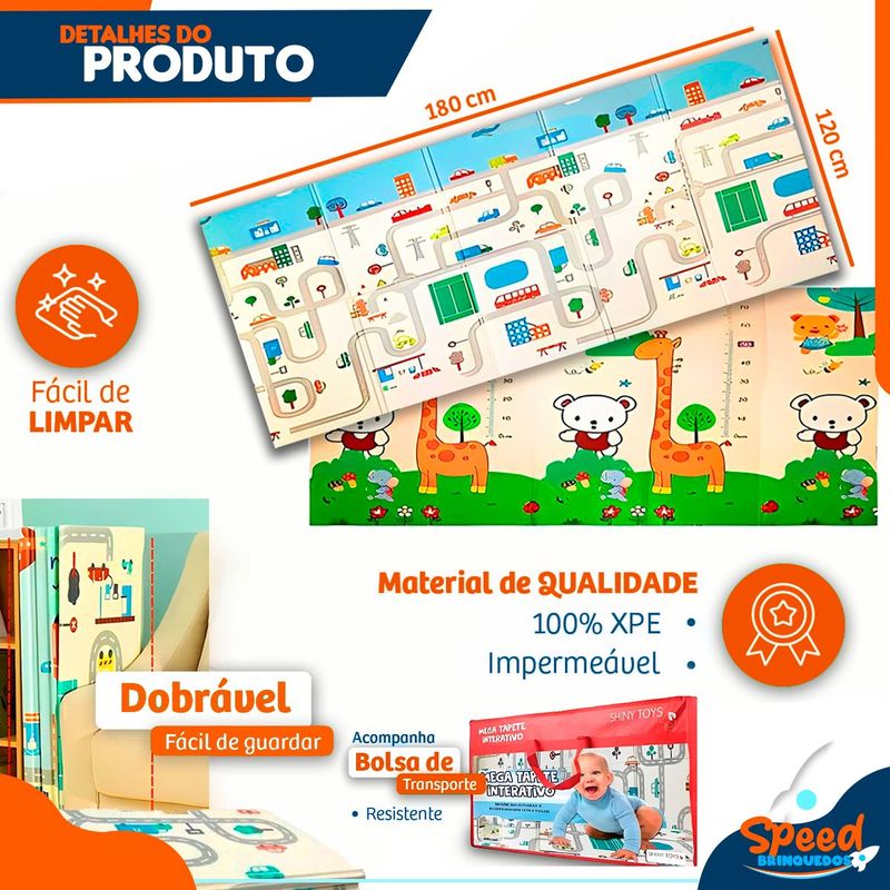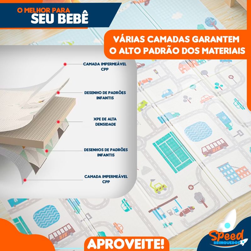 - Segurança em Destaque: Feito de poliéster macio e seguro, nosso tapete é a escolha perfeita para garantir que cada aventura seja repleta de diversão, sem preocupações com machucados.