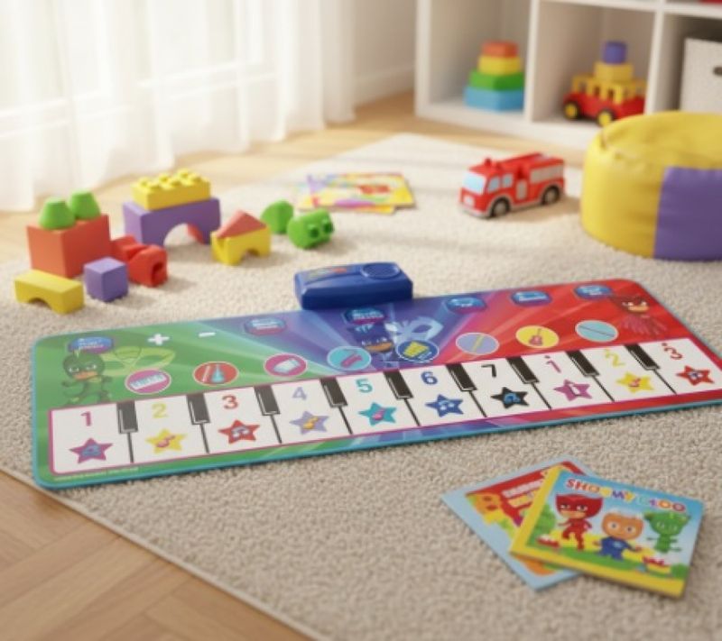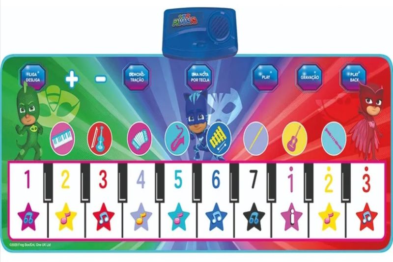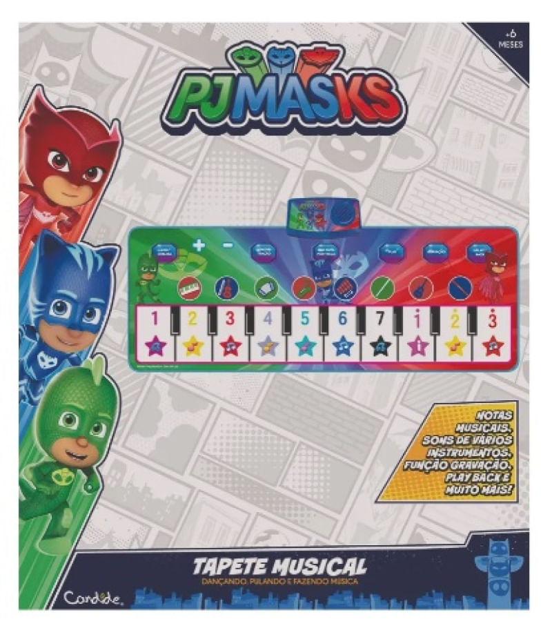 DIVERSÃO SEM FIM! O Tapete Musical Piano PJ Masks Infantil da Candide é um brinquedo divertido e educacional para crianças. Com um design colorido e estampado com os personagens PJ Masks, o tapete possui um teclado musical com 16 teclas que emitem sons de diferentes notas musicais. O Tapete Musical é uma excelente maneira de incentivar o interesse das crianças pela música e também ajuda no desenvolvimento da coordenação motora e da percepção auditiva. Além de possuir 8 músicas e diferentes sons emitidos pelas 19 teclas de piano, ainda tem um jogo de perguntas que desafia a criança a identificar as diferentes notas musicais. É um presente ideal para crianças que gostam dos personagens do PJ Masks e para aqueles que adoram música.