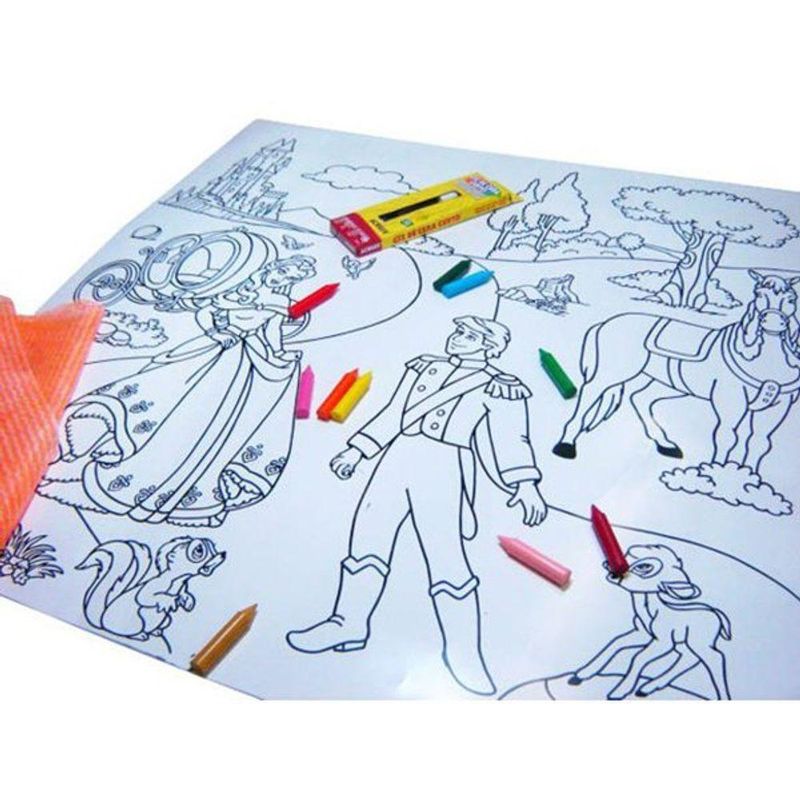 Tapete P/ Colorir - Reino Encantado - Kits For Kids Tapete p/ colorir - Reino Encantado - Kits for Kids Material: Polietileno e PolipropilenoRef.: 0050.Composto por ;um Tapete Plástico (70x70cm) com lindo desenho impresso, 1 caixa de giz de cera, 1 pano para apagar.A criança poderá pintar e apagar o desenho, quantas vezes ela quiser.CONTEÚDO DA EMBALAGEM:1 tapete plástico1 caixa de giz de cera1 panoEstimula criatividade, coordenação motora, percepção e identificação das cores.Medidas da embalagem: 28.5x11.5 cmMedidas do produto: 70x70 cmIdade: a partir de 4 anos.
