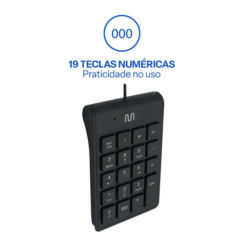 Com tecnologia Plug and Play, basta conectar na porta USB e começar a usar, sem a necessidade de instalação de drivers. O teclado possui 19 teclas essenciais para cálculos e entradas rápidas, além da tecla 000, que proporciona ainda mais agilidade em operações frequentes.