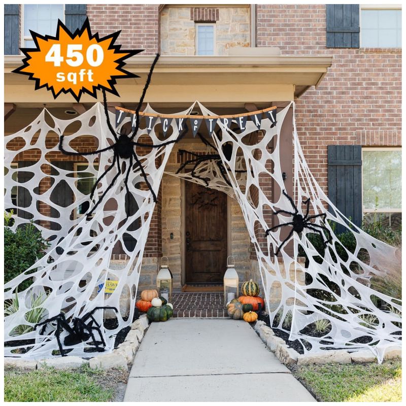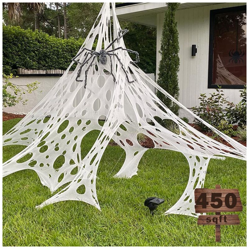 Decorações de Halloween espetaculares ao ar livre: Apare sua casa mal assombrada com essas teias de aranha que são super fáceis de incorporar às suas ideias de decoração de Halloween. Os acessórios na imagem NÃO estão INCLUÍDOS.