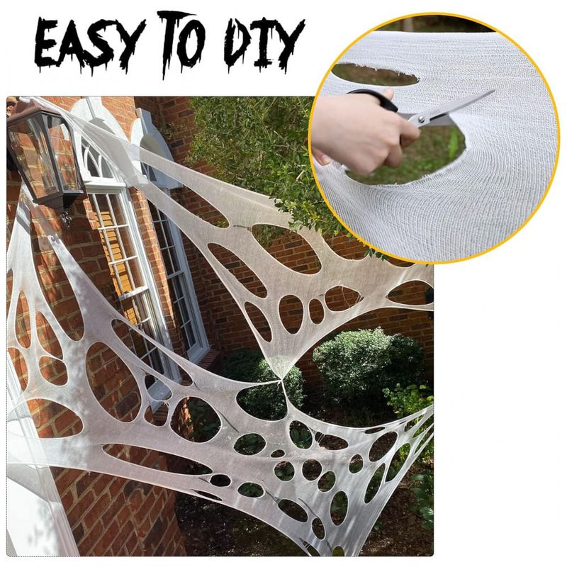 Decoração de Halloween de longa duração: A teia de aranha é feita de 380 gramas de gaze inacabada que cobre até 41,8 metros quadrados, o suficiente para atender às suas demandas de decorações de Halloween internas e externas.