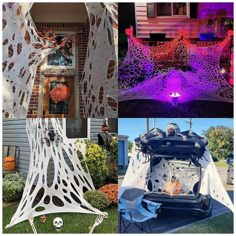 Pronto para o Halloween: Essas teias de aranha de Halloween se desenrolam e se estendem sobre espelhos, mesas, cercas, janelas, lareira ou varanda em festas de Halloween, festas à fantasia e eventos de doces ou travessuras há anos
