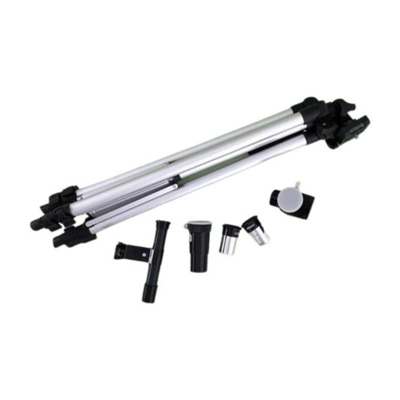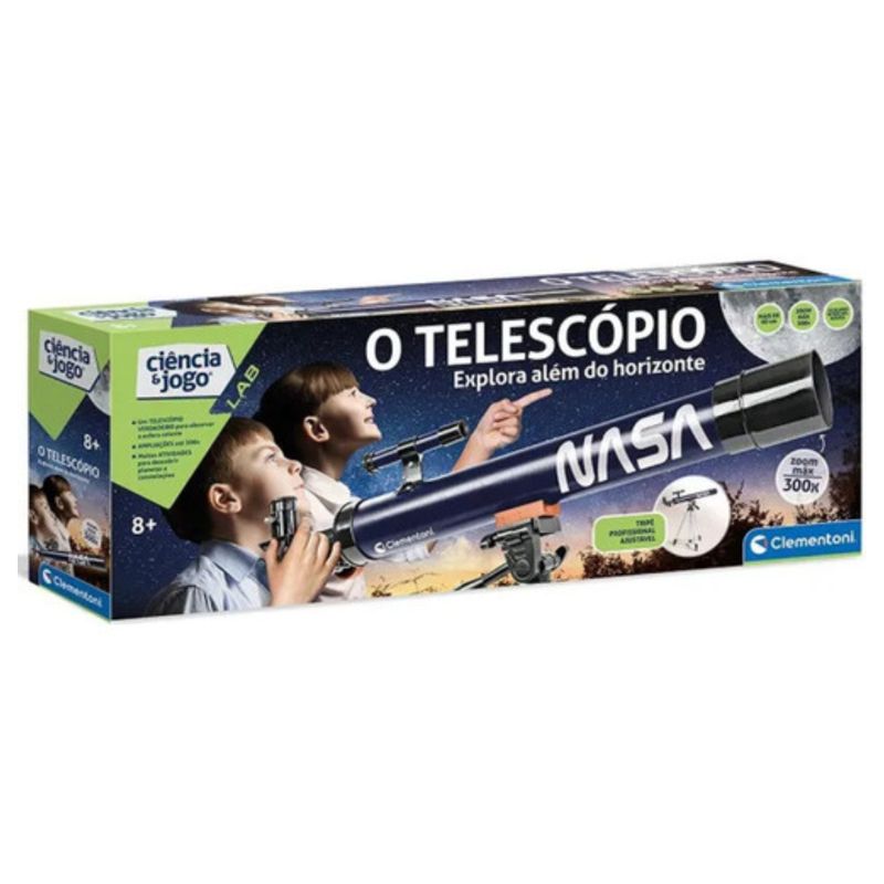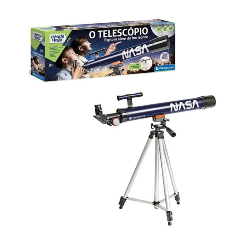Contém: 01 autêntico telescópio da NASA com lente objetiva de 50 mm e oculares intercambiáveis para diversos efeitos de ampliação até 300x. Com tripé extensível até aos 130 cm.