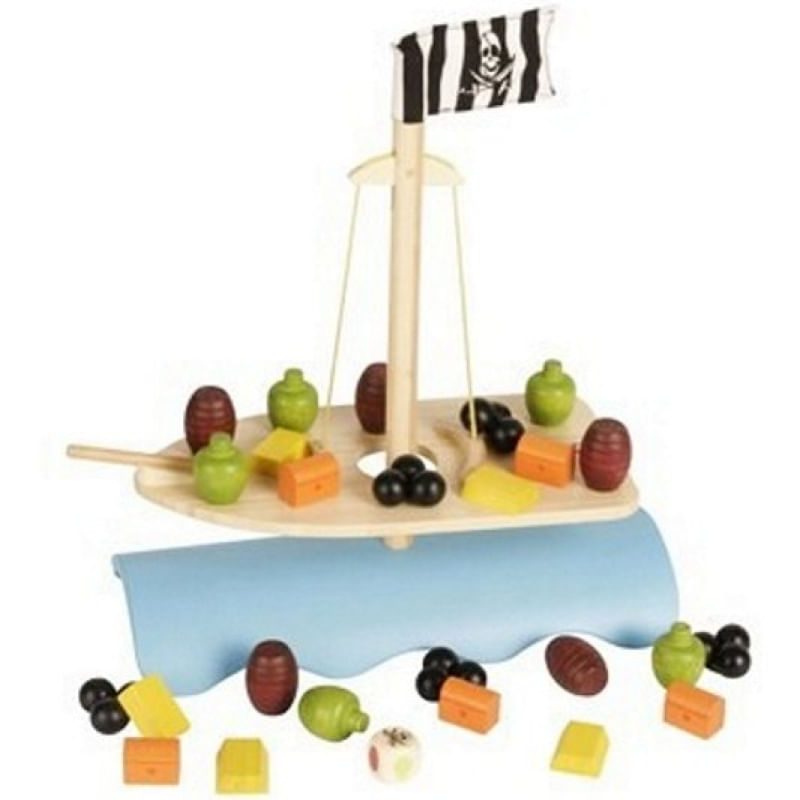 Um jogo de equilíbrio. O dado irá dizer qual objeto deve ser colocado sobre o convés do navio. Se o objeto parar, tudo bem, mas se a peça for colocada no local inadequado, todo o resto cai no mar. O tempestade no mar hape possui design moderno em bambu.