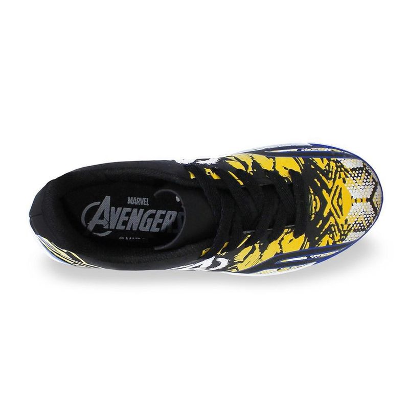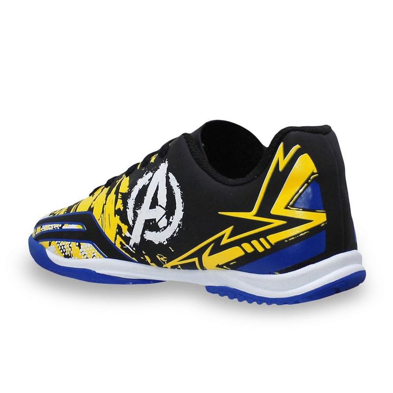 O tênis futsal Dray Marvel Vingadores é ideal para aqueles que desejam ser o destaque no futebol de salão. Confeccionada em material sintético, a peça é leve e resistente. Conta com solado em borracha que oferece aderência e tração, além disso, possui ponto de giro, proporcionado mais segurança nas mudanças rápidas de direção. Seu sistema de fechamento por cadarço garante o ajuste ideal aos pés. O modelo oferece também reforço acolchoado no calcanhar entregando mais conforto, lingueta flexível e palmilhas removíveis, tonando mais fácil a higienização. O design vem nas cores preto e amarelo com detalhes em azul e branco e remete aos famosos super heróis da Marvel, os vingadores. Referência: 4069.