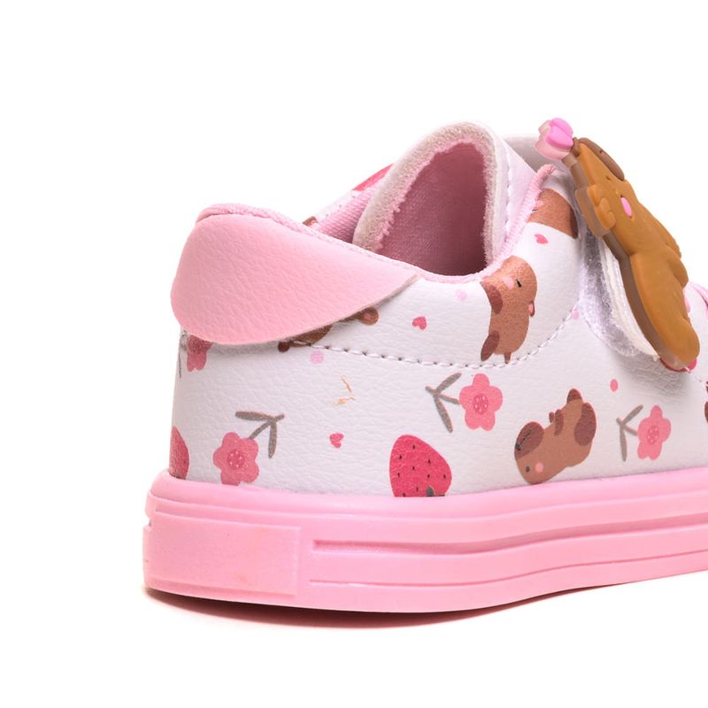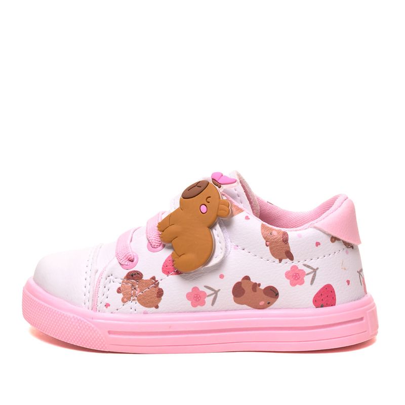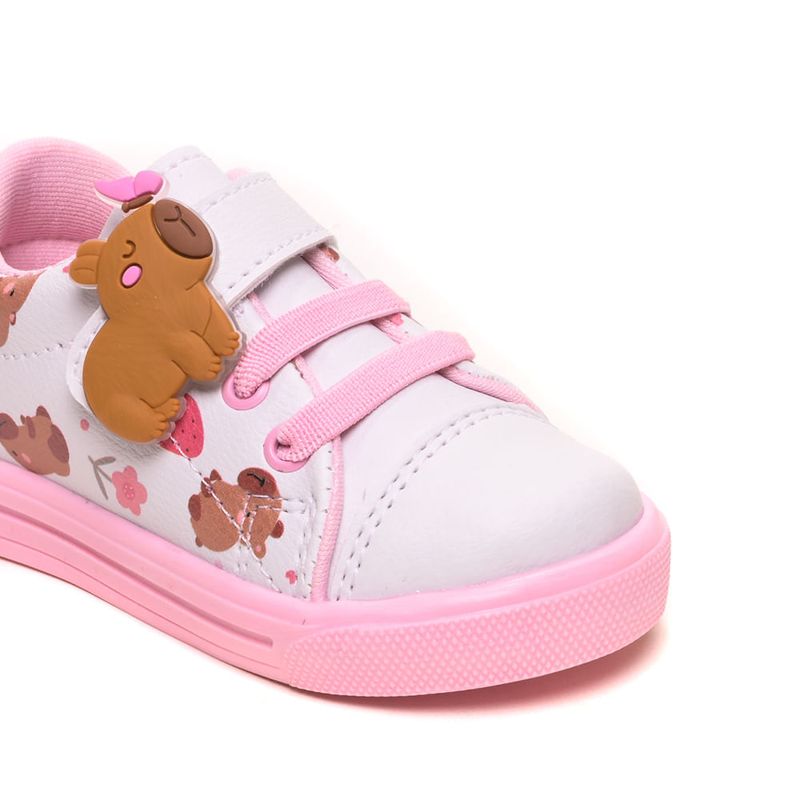 O Tênis Infantil Linda Ju Capivara Branco é confeccionado em material sintético com solado antiderrapante e fechamento com velcro. Esse modelo de tênis infantil possui vários desenhos de capivaras nas laterais, além de um patch super fofo de capivara na ponta do velcro. Os primeiros passos das princesas serão confortáveis e seguros graças ao Tênis Infantil Linda Ju Capivara Rosa! Garanta já!