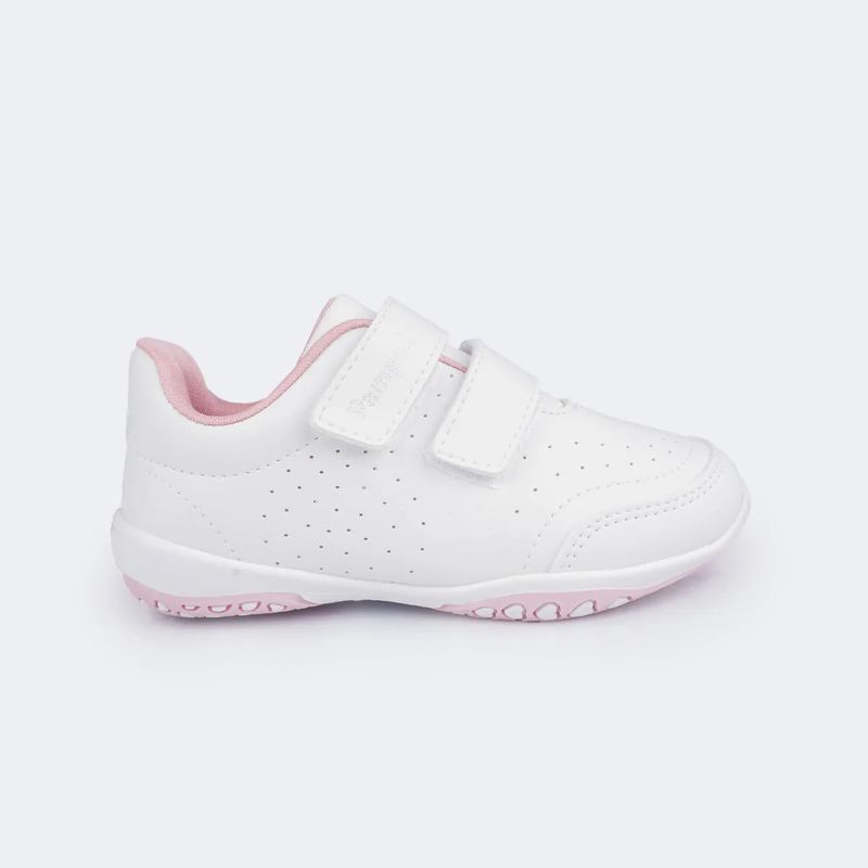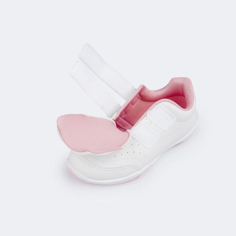 Confortável e prático, este tênis é ideal para a rotina escolar e os momentos de lazer. Na cor branca, o modelo combina com tudo e oferece liberdade de movimento para o dia a dia. Feito em material sintético com perfuro, permite melhor ventilação, mantendo os pés mais frescos. O forro interno com espuma ajuda a absorver o suor e traz mais aconchego, especialmente na região do calcanhar.