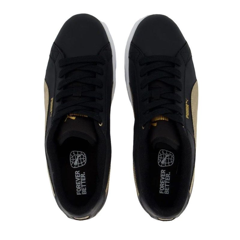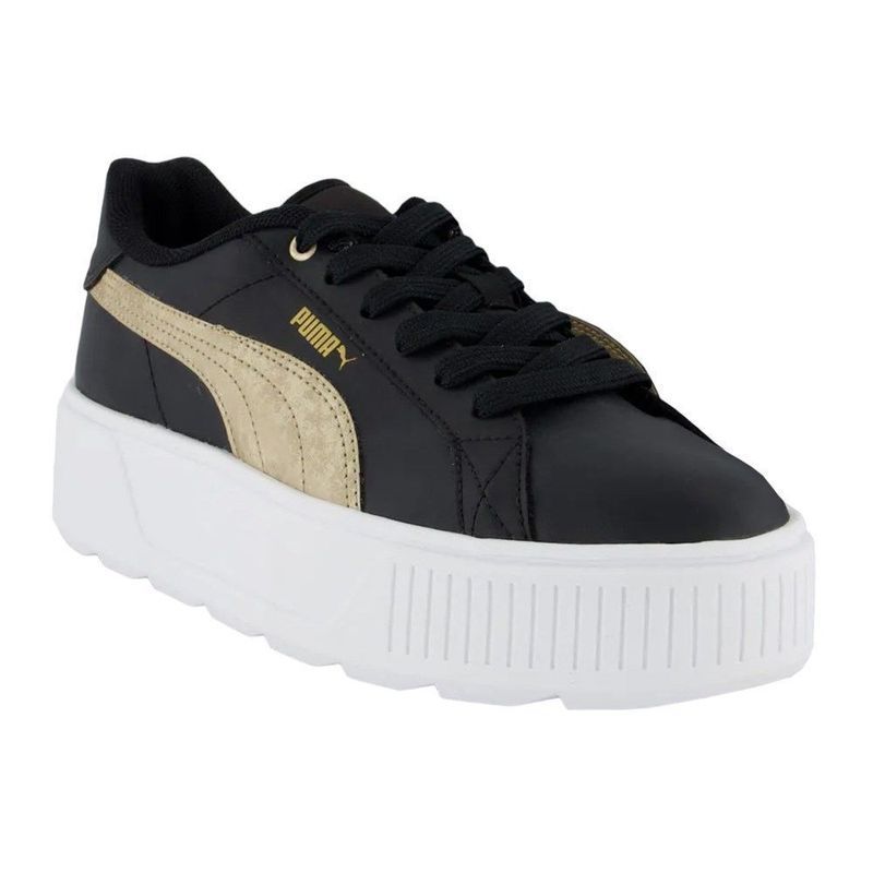 O tênis Puma Space Metallics Feminino é um modelo elegante e moderno, indicado para mulheres que desejam um calçado versátil para suas atividades diárias. Seu cabedal é confeccionado em material sintético com acabamento metálico, proporcionando um visual arrojado e sofisticado. O solado é emborrachado, oferecendo aderência e durabilidade em diferentes tipos de superfície, além de possuir salto de aproximadamente 3CM por toda sua extensão. O fechamento é feito por cadarço, permitindo um ajuste personalizado e seguro aos pés. As palmilhas são produzidas em espuma de alta densidade, além de serem removíveis, viabilizando maior conforto e facilitando sua higienização. O tênis Puma Karmen Space Metallic é a pedida certa para acompanhar suas atividades casuais com total estilo e conforto. Referência: 394298 01.