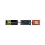 Contém: 1 locomotiva, 1 vagão de carga, 1 vagão-plataforma com carga e 1 peça para brincar.