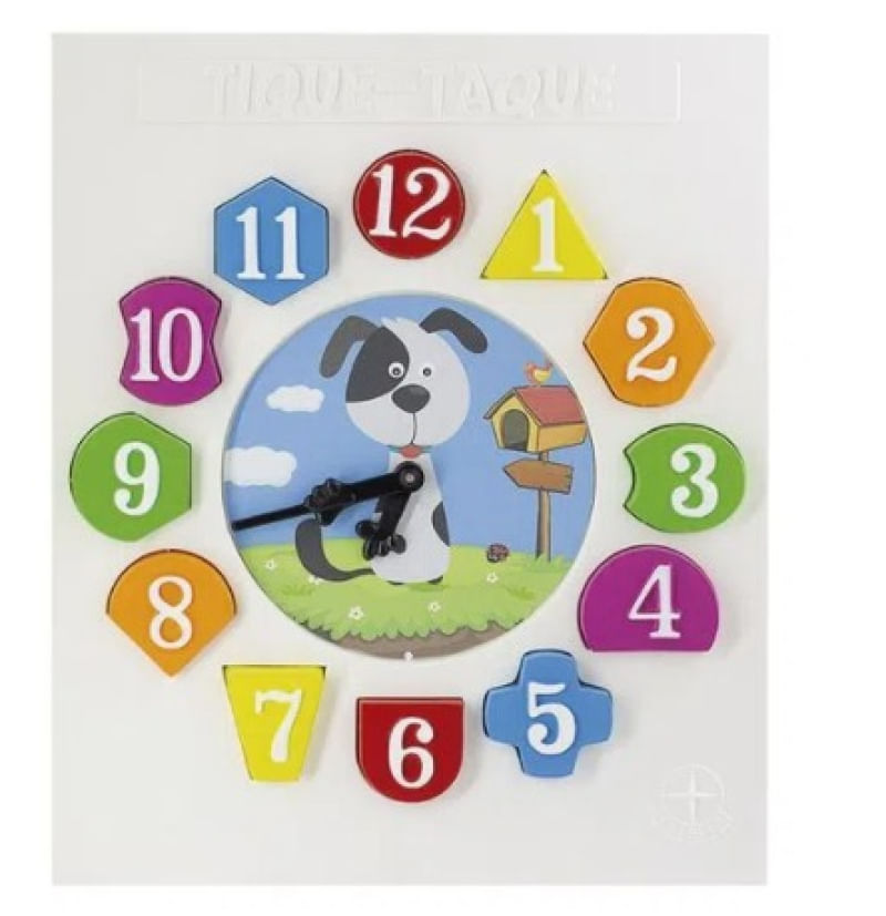 Tique Taque ensina a criança na fase de aprendizado das horas. Além disso, estimula a coordenação motora já que a criança tem que encaixar as formas geométricas na ordem correta.