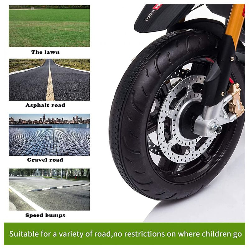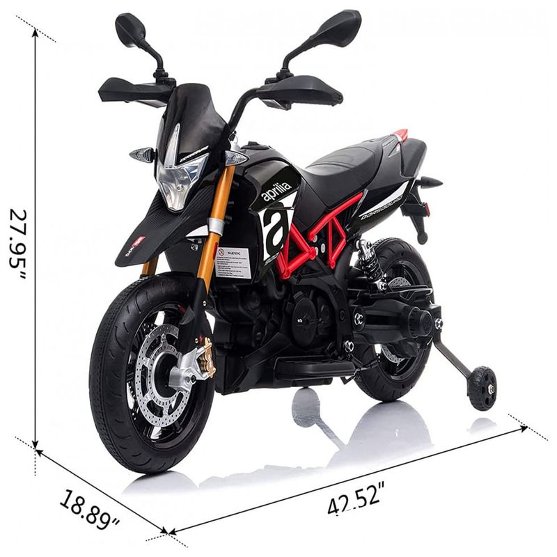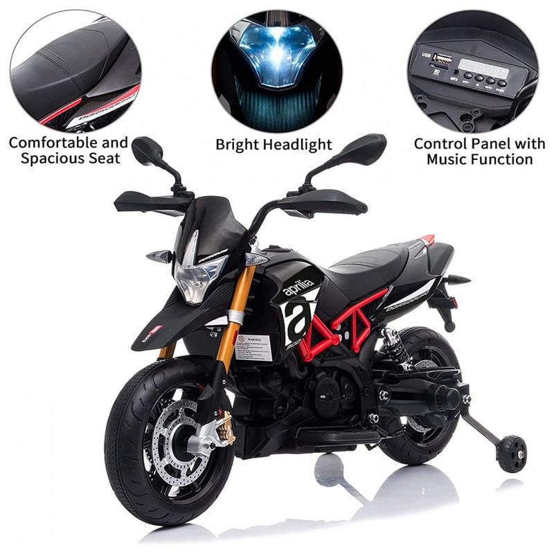MELHOR PRESENTE PARA CRIANÇAS Apresentando um design esportivo e corpo aerodinâmico em escala infantil, esta Aprilia 12V passeio em motocicleta oficialmente licenciada com farol e luz traseira brilhantes, rodinhas, uma buzina retumbante e um assento largo e curvo seus pilotos de 37 72 meses de idade uma experiência de direção agradável e emocionante.