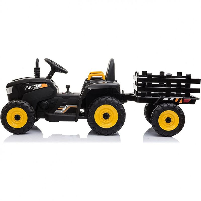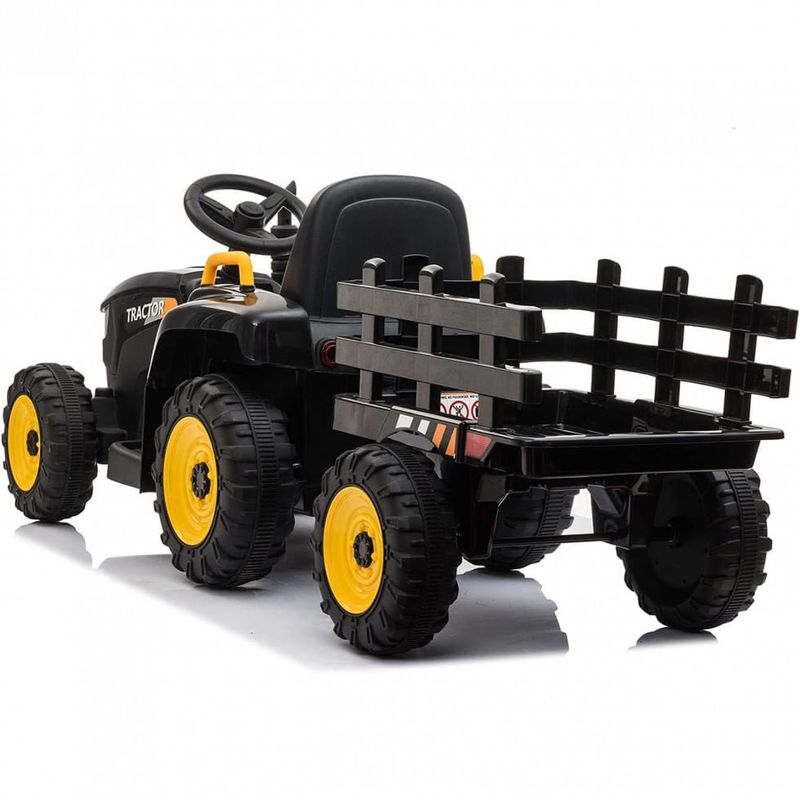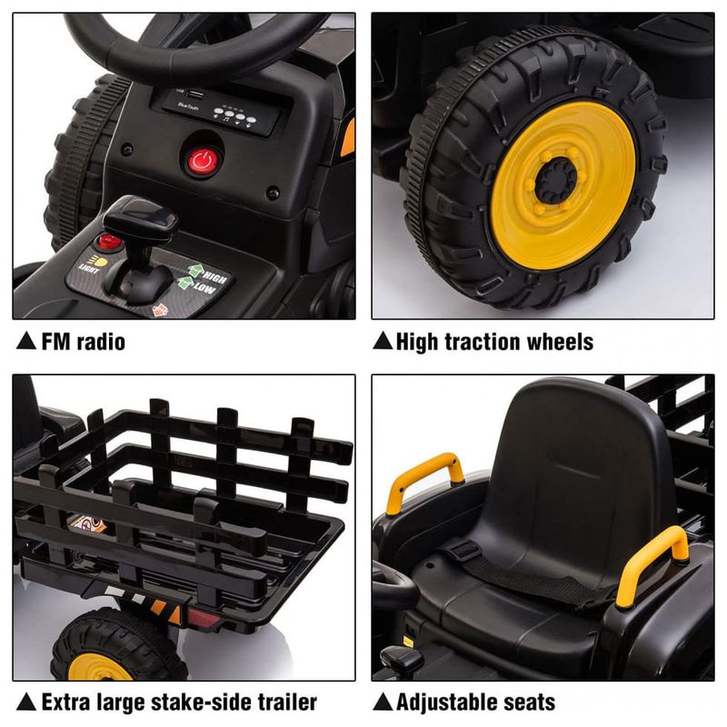 Este trator de brinquedo está configurado com um grande trailer que só pode ser para transportar itens não muito pesados, como livros e brinquedos, mas não pessoas. Juntamente com a buzina acionada pela pressão do ar que fará sons engraçados, seu filho poderá se divertir ainda mais ao dirigir.