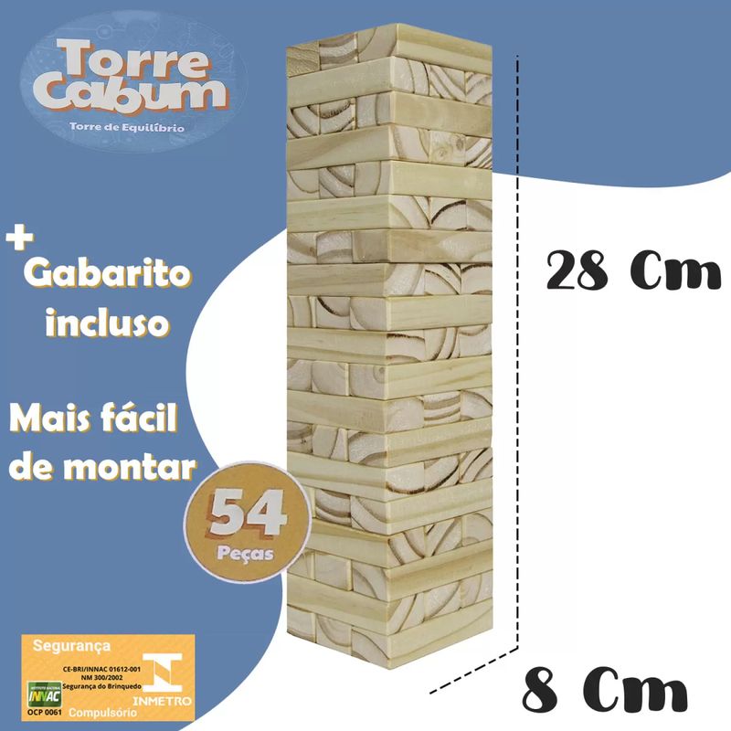 TORRE DE EQUILIBRIO JENGA TORREMOTO MADEIRA MACIÇA 54 PEÇAS