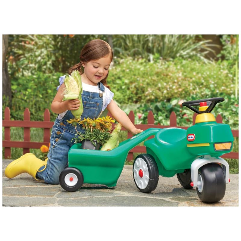 O carrinho fixável é fácil de encaixar, permitindo que as crianças transportem seus itens com facilidade, enquanto desenvolvem habilidades motoras importantes. O assento do trator é espaçoso e confortável, acomodando as crianças à medida que crescem.