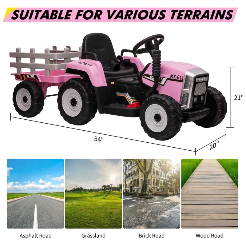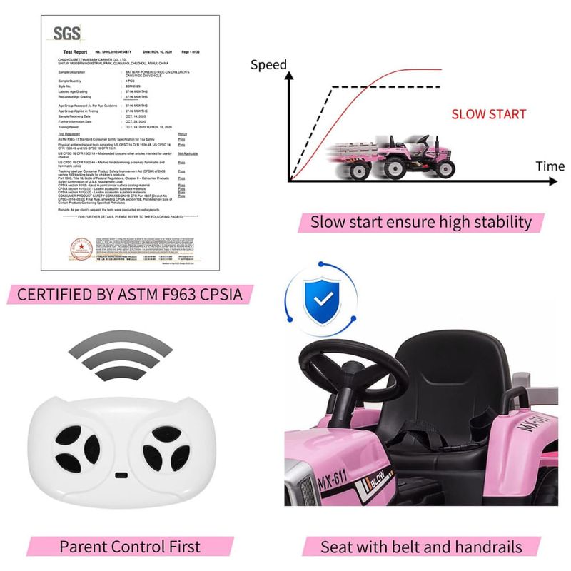 Versão de pneus EVA de 35 W - A versão atualizada do trator tem motor de 35 W, bateria de 7Ah e pneus EVA que são mais potentes e absorventes de choque do que os pneus de banda de rodagem. Leva apenas 20 minutos para montar o carro seguindo o vídeo ou instruções de instalação.