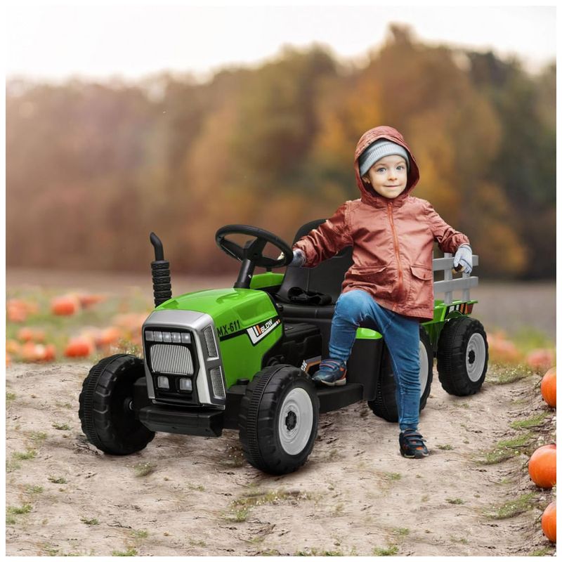 Nosso trator infantil Rideon é perfeito para uma experiência de brincadeira aprimorada. Possui um trailer traseiro removível que proporciona espaço para transportar brinquedos e criar uma dinâmica de jogo emocionante. As crianças podem controlar o carro diretamente dentro do banco do motorista ou, se preferir, você pode direcionar o brinquedo usando o controle remoto para aumentar a interação com seu filho.