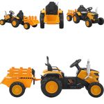 Com motor duplo e bateria recarregável 12V 4.5Ah, o trator entrega potência suficiente para aventuras no quintal, calçadas ou terrenos irregulares leves. O pedal multifuncional acelera e freia suavemente, promovendo uma experiência divertida e segura.