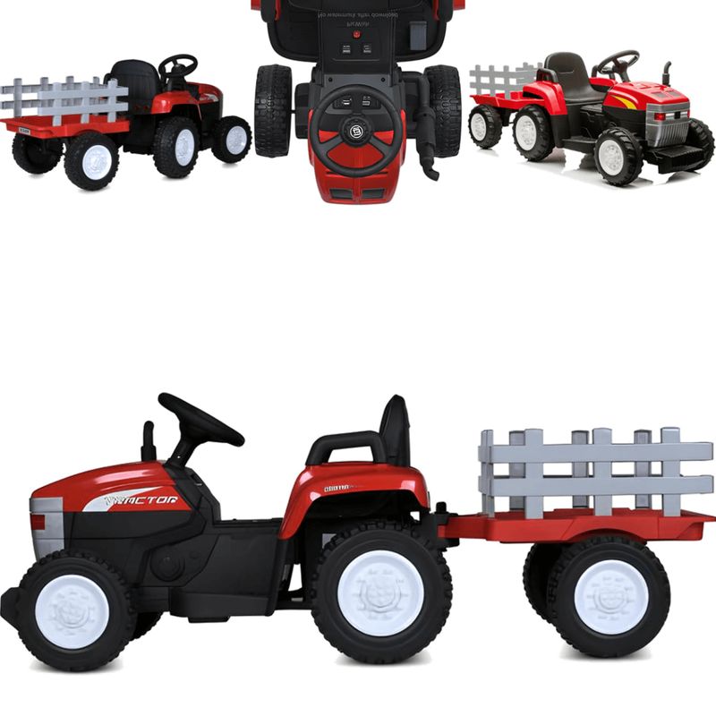 O Trator Elétrico Shiny Toys com Carroceria está disponível na cor vermelho com detalhes em preto. Um modelo marcante, que se destaca em qualquer ambiente!