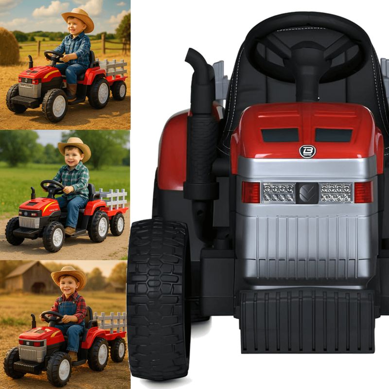 O Trator Elétrico Infantil da Shiny Toys é ideal para crianças de 3 a 8 anos e traz um visual encantador com acabamento em vermelho vibrante. Ele acompanha uma carroceria funcional (a famosa carroça), permitindo que a criança transporte brinquedos ou crie brincadeiras ainda mais criativas!