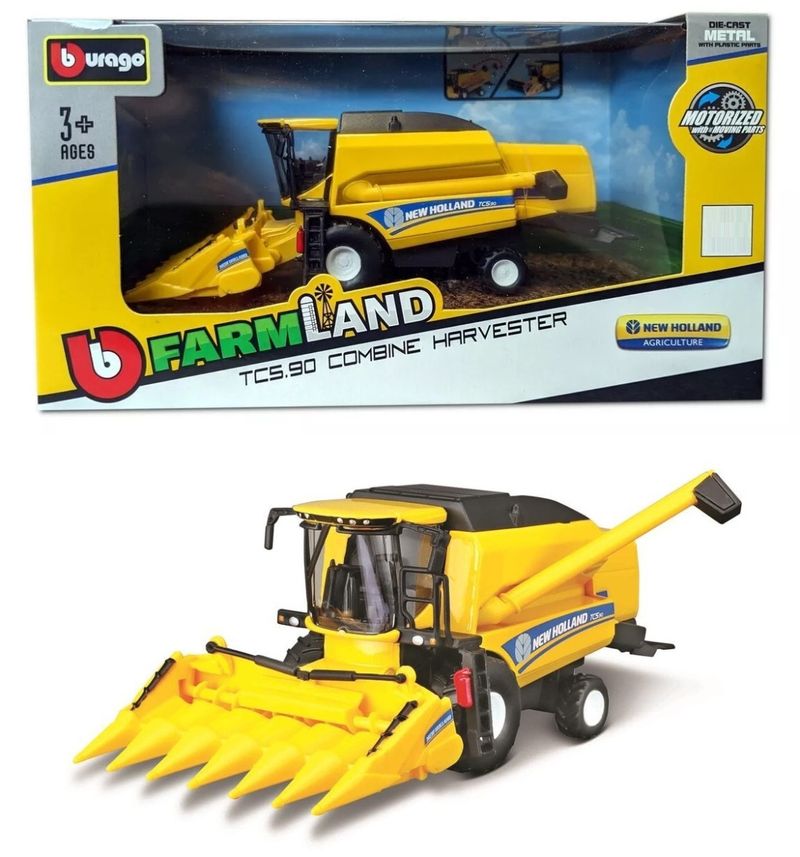 Trator Colheitadeira de MilhoNew Holland TC5.90Marca do produto: Bburago.Coleção: Agriculture / Farmaland.Comprimento: Aproximadamente 18 cm de comprimento.Pneus de Borracha.Miniatura em Metal com partes de plástico.