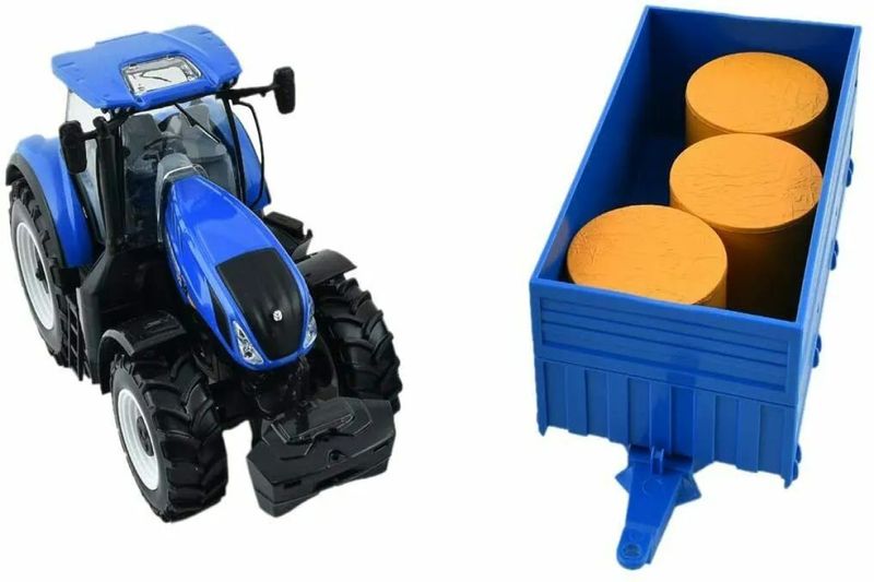 Trator New Holland T7.315 HD c/ Carreta de SilagemMarca do produto: Bburago.Coleção: AgricultureEscala: 1/32 (aproximadamente 34 cm de comprimento o trator + carreta).Pneus de Borracha.Cabine Removível.Miniatura em Metal com partes de plástico.