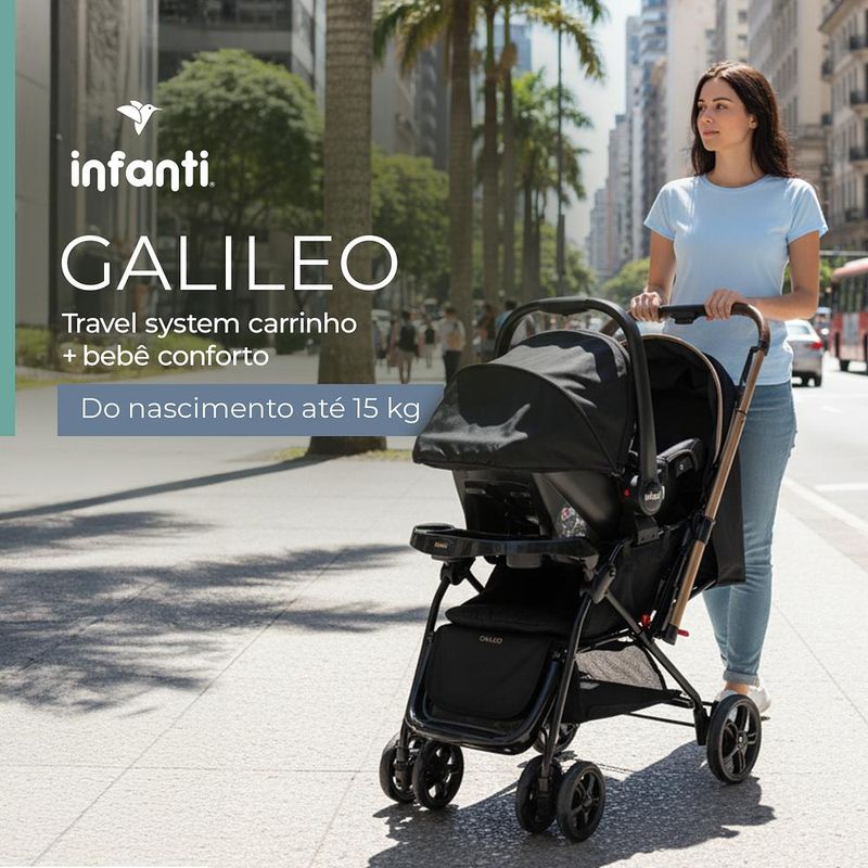 Conteúdo da embalagem: 1 carrinho, 2 adaptadores, 1 bebê conforto e 2 manuais*Cadastre seu produto no site da INFANTI em até 6 meses após a compra no Brasil e ative a garantia estendida gratúita
