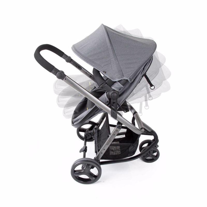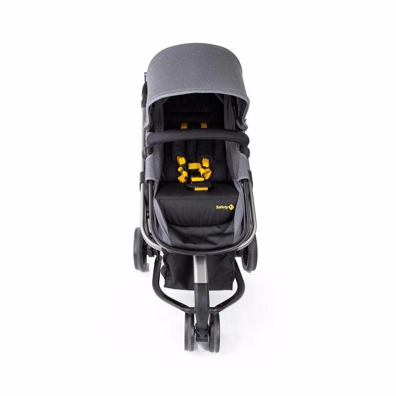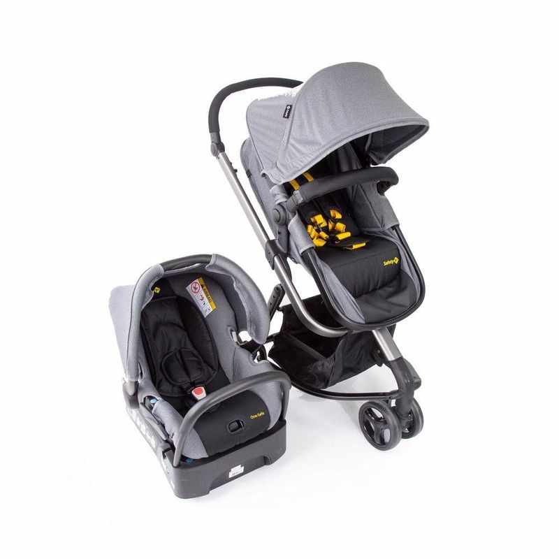Travel System Mobi Safety 1st, completo, moderno e confortável. O carrinho tem estrutura de alumínio, assento reversível que se transforma em moisés, reclinável em 4 posições, encosto ajustável em múltiplas posições, manopla ajustável em altura, 3 rodas largas para mais conforto: roda dianteira dupla e rodas traseiras grandes, suspensão, freio centralizado, giro 360° com trava de movimento na roda dianteira, amplo cesto de compras com capacidade de até 5kg, cinto de segurança de 5 pontos com protetores acolchoados, ajustáveis em altura e largura, capota retrátil, removível, com proteção solar UV50+ e alça para brinquedo.