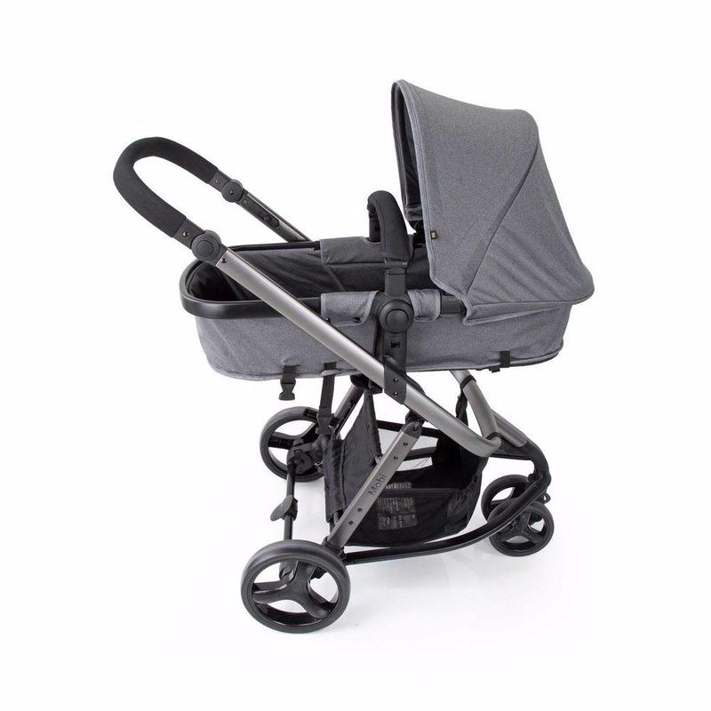 Conjunto travel system completo, carrinho de alumínio com 3 rodas, assento reversível que se transforma em moisés e bebê conforto com base para veículo.