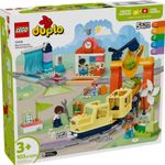 Os pequenos podem embarcar em uma aventura ferroviária com o conjunto de construção LEGO DUPLO Big Interactive Community Train (10428) para meninos e meninas de 2 anos ou mais. Este conjunto de trem para crianças pequenas é repleto de recursos e funções divertidas, incluindo 4 figuras diversas, 5 tijolos de ação e acessórios detalhados para horas de brincadeira interativa. As crianças podem carregar o trem com carga, carregar a locomotiva ou lavar os vagões. Cada atividade ganha vida com luzes e sons conforme o trem de brinquedo passa sobre um dos tijolos de ação. As crianças pequenas também embarcarão em uma jornada de aprendizado, começando na estação de trem de brinquedo. As crianças em idade pré-escolar são incentivadas a usar o pensamento criativo para traçar uma rota para o brinquedo de trem de passageiros Push&Go, usando habilidades de resolução de problemas em tarefas à medida que avançam. O aplicativo gratuito LEGO DUPLO Interactive Trains permite que os pequenos gravem e criem seus próprios efeitos sonoros e conduzam a locomotiva usando um dispositivo eletrônico portátil. Contém 103 peças.