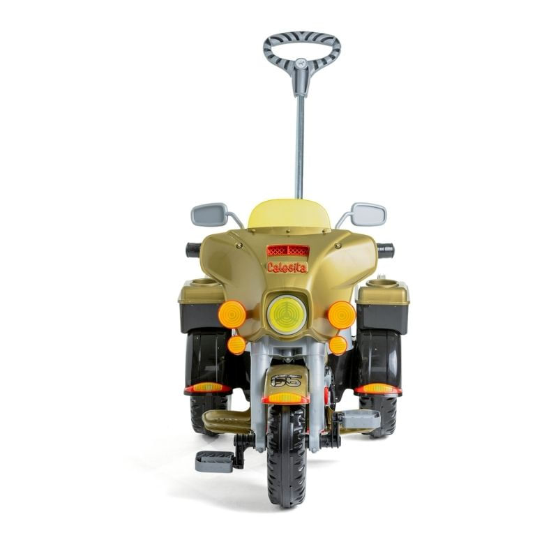 A Street Classic é a escolha perfeita para os pequenos aventureiros. Inspirado nas motos clássicas, ele tem um visual robusto e cheio de estilo. Garantindo passeios cheios de diversão e conforto, ele oferece também cinto de três pontas, assento anatômico e apoio para os pés, para mais segurança. O Street Classic é ideal para garantir diversão com segurança e muito estilo. Na versão passeio, seus pequenos curtem passeios tranquilos com o empurrador e apoio de pés removível, fáceis de encaixar. Quando a diversão virar aventura, basta retirar os acessórios, e o triciclo estará pronto para pedalar e viver a experiência completa de emoção.