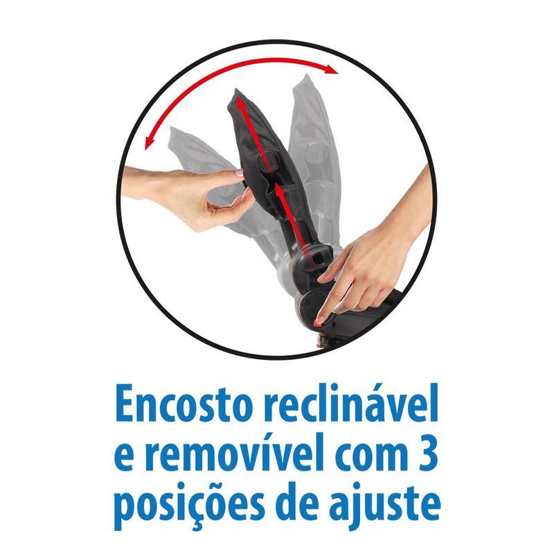 Encosto reclinável e removível com 3 posições de ajuste