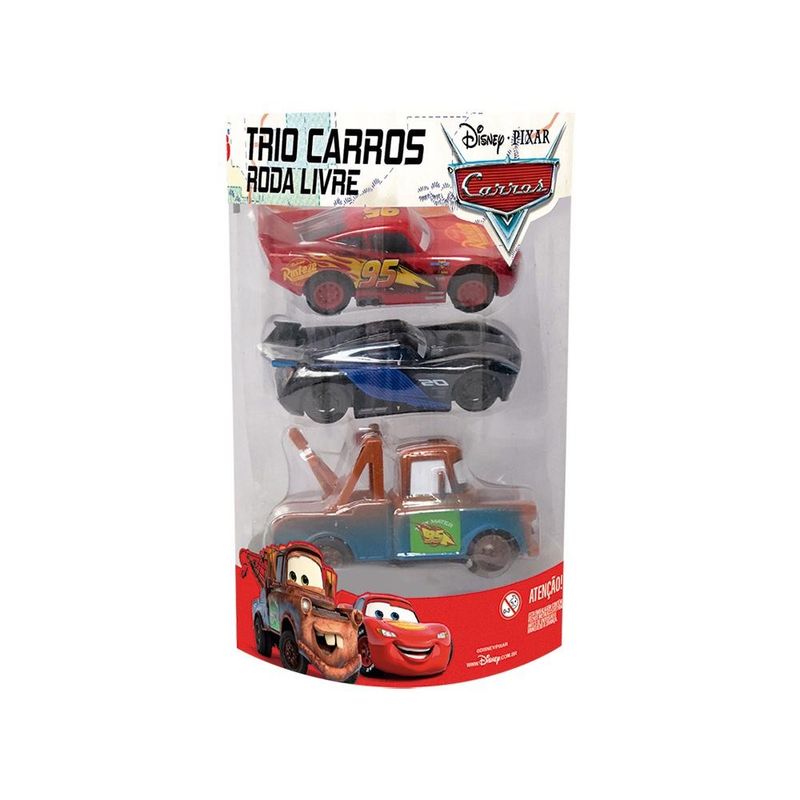 Trio Roda Livre Toyng Carros Disney McQueen Matte e Jackson