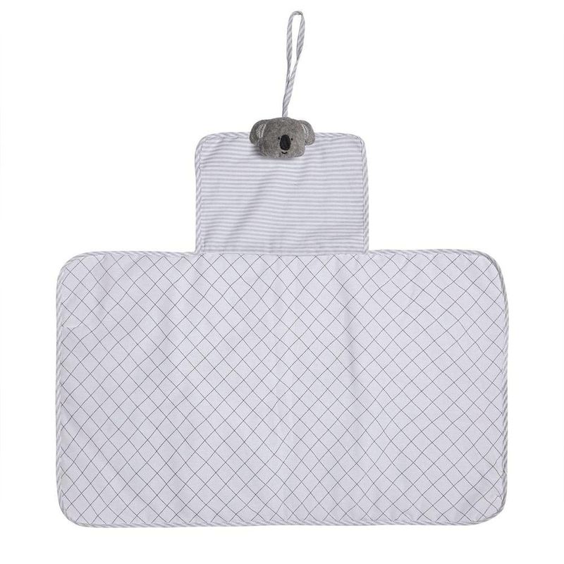 Trocador Porta Fraldas Portátil 66X40cm Coala Nosso Trocador Porta Fraldas Papi Friends portátil é super prático. Pois possui um lado impermeável e outro de tecido, tornando sua limpeza super rápida e fácil! Sua espuma é macia e confortável e possui um bolso na lateral para guardar fraldinhas, pomadas, lenço umedecido entre outros itens. É um item versátil e vem com uma cordinha para amarrar, facilitando na hora do transporte. Possui a medida de 66cm x 40cm. Possui pelúcia de bichinho na cordinha, tornado a hora da troca mais divertida. *Caso o trocador seja colocado em locais altos como a cômoda do quarto ou até mesmo em cima da cama, pedimos que nunca deixe o bebê sozinho! Detalhes: • Trocador Portátil: com cordinha para facilitar armazenagem e transporte.