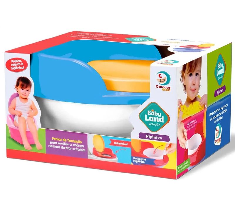 O Baby Land Pipinico da Cardoso Toys é um produto de puericultura. Desenvolvido para crianças na fase da primeira infância, ele possui funções que auxiliam no processo de desfralde das crianças. É nessa fase que a criança mais precisa de segurança e estímulos para desenvolver a autonomia e independência. O Pipinico tem assento ergonômico para que a criança possa sentar-se de maneira confortável, base com altura ideal, recipiente branco para que os pais possam avaliar as cores do xixi e do cocô e acessórios para adaptação do assento no vaso sanitário. É indicado para crianças maiores de 12 meses e tem aproximadamente 23 cm de altura e 38 cm de comprimento. Os diferenciais do Baby Land Pipinico estimulam a coordenação motora do bebê e sua autonomia, além de ser adaptável a vasos sanitários para uma transição completa.
