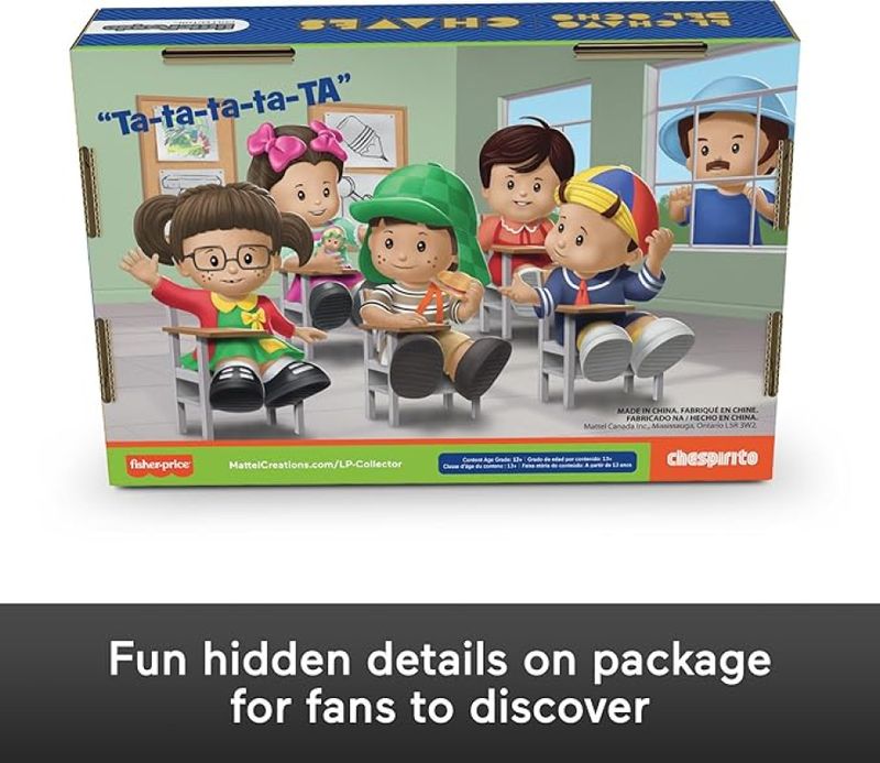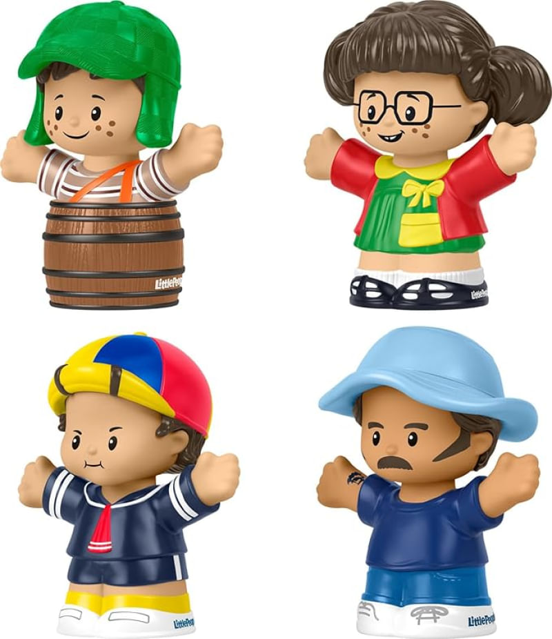 O conjunto Turma do Chaves Little People da Mattel é uma edição especial inspirada na clássica série que conquistou gerações. Traz quatro figuras colecionáveis representando Chaves em seu barril, Quico, Chiquinha e Seu Madruga, todos com visual estilizado e cheio de personalidade. Cada figura mede aproximadamente 6 centímetros e foi criada com riqueza de detalhes que remetem aos personagens originais.