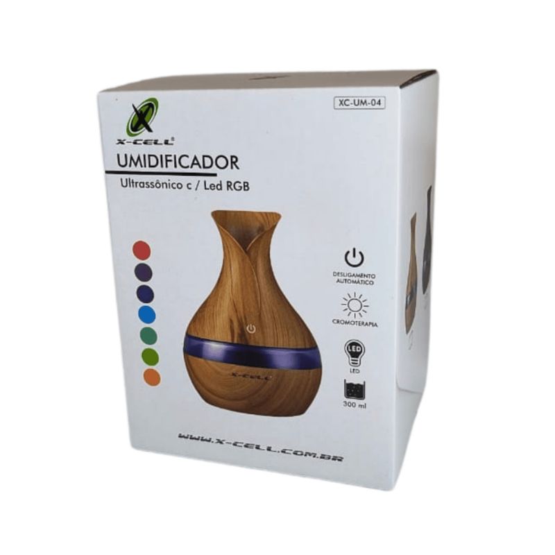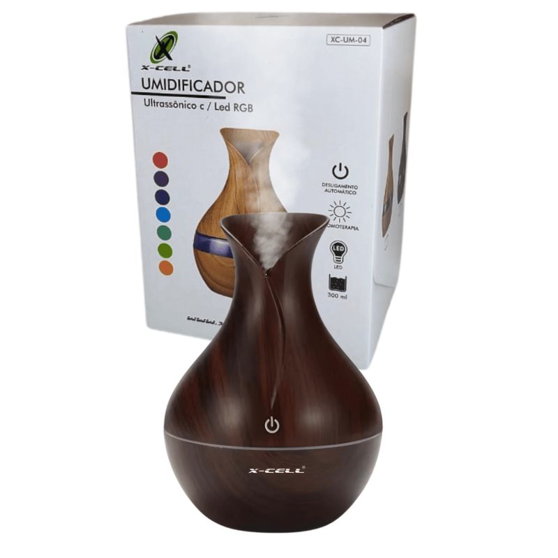 O Umidificador Difusor Ultrassônico X-Cell XC-UM-04 é a união perfeita de funcionalidade e design elegante, ideal para melhorar a qualidade do ar em ambientes internos e criar uma atmosfera relaxante. Com capacidade de 300ml e tecnologia ultrassônica silenciosa, ele umidifica o ambiente sem ruídos, sendo perfeito para quartos, escritórios e salas de estar. Seu acabamento em madeira escura e a iluminação LED suave funcionam como um item de decoração sofisticado, além de permitir o uso de essências aromáticas para cromoterapia e aromaterapia, promovendo bem-estar e alívio do estresse.