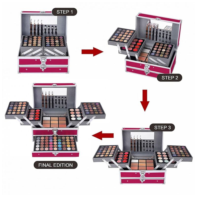 Descubra o Kit de Maquiagem Completo UNIFULL, especialmente elaborado para mulheres e meninas que buscam beleza e praticidade em um só produto. Este kit profissional reúne 132 cores incríveis, incluindo 94 tons de sombra para os olhos, 12 cores de batom, 12 tons de corretivo, 5 opções de pó para sobrancelha, 3 cores de pó translúcido, 3 tons de blush e 3 de pó para contorno. Além disso, contém 2 lápis para lábios, 2 delineadores, 4 aplicadores esponja, 3 batons, 3 gloss labial, 8 pincéis para maquiagem, 1 lápis para sobrancelha, 1 máscara para cílios e 1 delineador em caneta, além de um puff esponjoso para aplicação.
